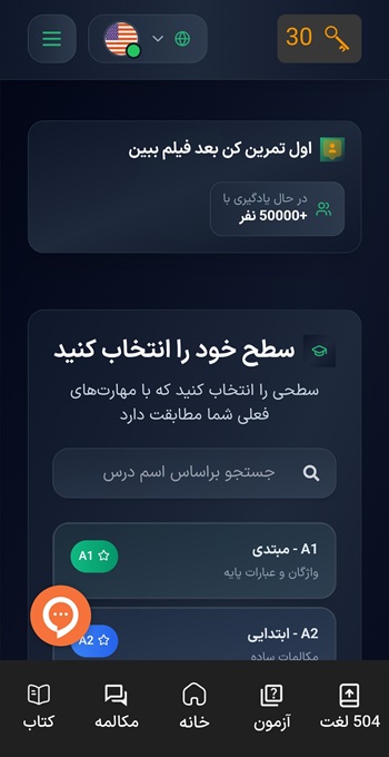 یادگیری کلمات انگلیسی بر اساس سطح زبان: این سیستم با بررسی عملکرد شما در تمرینها، کلمات و گرامری که نیاز به تمرین بیشتر دارند را شناسایی کرده و آنها را در بازههای زمانی بهینه برای شما مرور میکند.