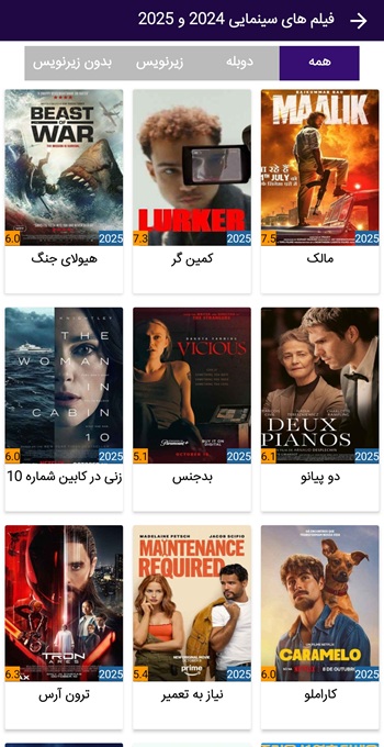 اپلیکیشن تخصصی فیلم و سریال با آرشیو غنی و کامل و بسیار بروز با دوبله فارسی و زبان اصلی و زیرنویس فارسی هم امکان دانلود