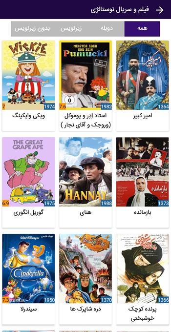 یکی از ویژگی های خاص و باحال اپلیکیشن parafilm پارافیلم بخش نوستالژی برنامه هست که پر از فیلم، سریال، انیمیشن و کارتون قدیمی و با کیفیت خوب و با