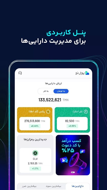 دانلود اپلیکیشن جدید پول نو pooleno صرافی ارز دیجیتال خرید بیت کن فقط با 500 تومان قابل نصب روی آیفون و اندروید، نسخه وب اپلیکیشن برای ویندوز.